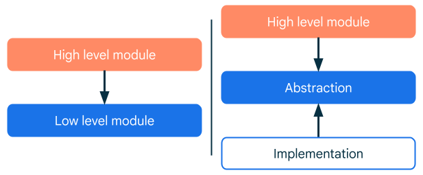 Android 공식 문서에서도 이 방식을 Dependency Inversion이라는 개념으로 소개하고 있습니다. Dependency Inversion은 구현체(Concrete Implementation)와 추상화(Abstraction)를 분리하여 모듈 간 의존성을 줄이는 방법입니다.
