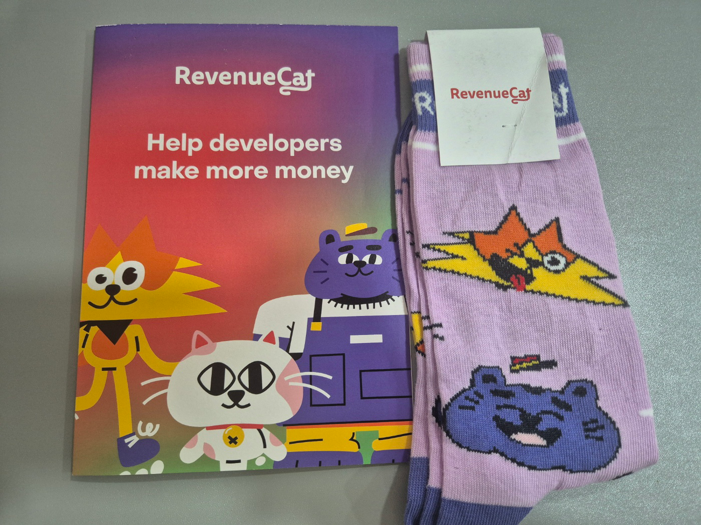 RevenueCat 부스는 귀여운 양말을 나눠주며 관람객들의 발걸음을 사로잡았습니다.
