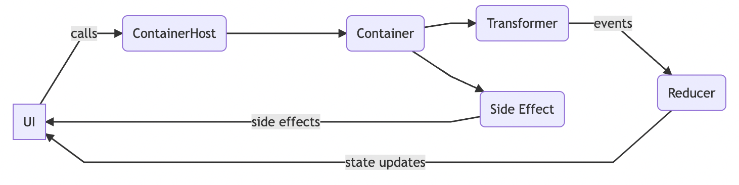 컨테이너는 컨테이너 상태 및 Side-Effect 업데이트를 내보내는 플로우(Flow)를 노출합니다.