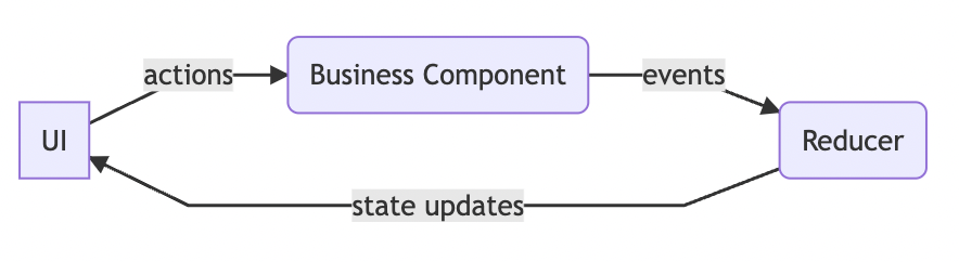 - UI는 비동기적으로 비즈니스 컴포넌트에게 액션을 보냅니다.