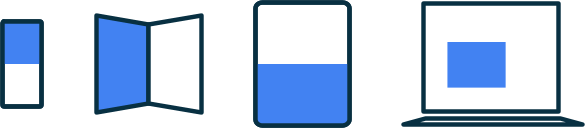태블릿에서는 앱이 다른 앱과 화면을 분할할 수 있는 멀티 윈도우 모드에서 실행될 수 있습니다. ChromeOS에서는 앱이 크기 조정 가능한 창에 있을 수 있습니다. 접이식 장치와 같은 경우 더 많은 물리적인 화면이 있을 수도 있습니다. 이러한 모든 경우에서 물리적인 화면 크기는 콘텐츠를 표시하는 방법을 결정하는 데 관련이 없습니다.