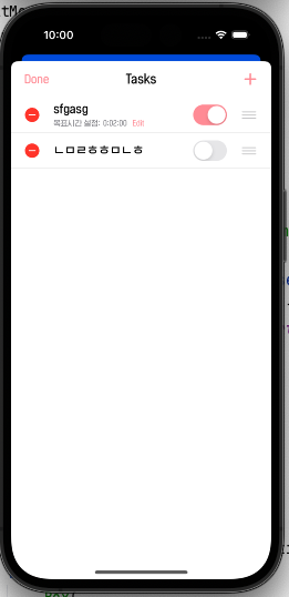 - Edit 모드에 진입하면 좌우측에서 삭제와 드래그할 수 있는 아이콘이 Animate 하게 등장한다.